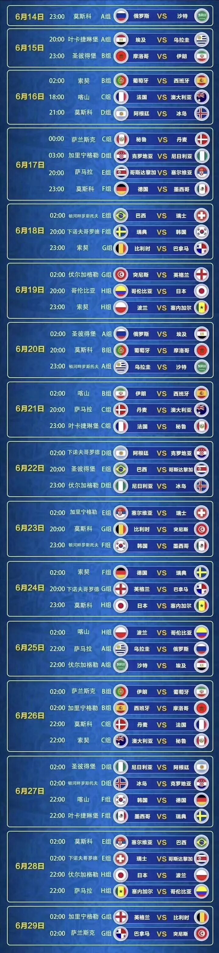 附帶一張小組賽時(shí)間表給大家~注意身體少熬夜哦~