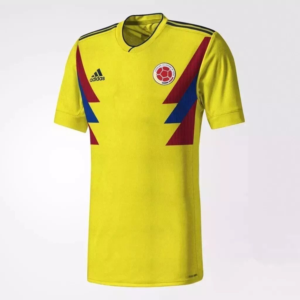 哥倫比亞的球衣主色調(diào)依舊是黃色,兩肋有象征國(guó)旗顏色的三個(gè)協(xié)條紋,動(dòng)感十足。