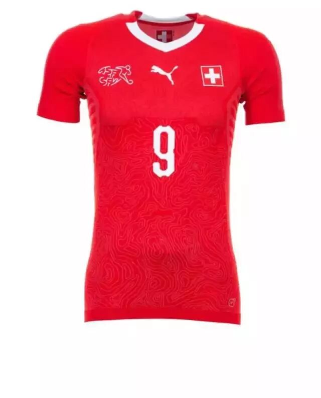 瑞士的贊助商是PUMA,依舊是緊身衣。腹部是梯田般密密麻麻的花紋,很難理解設(shè)計(jì)師的初衷。