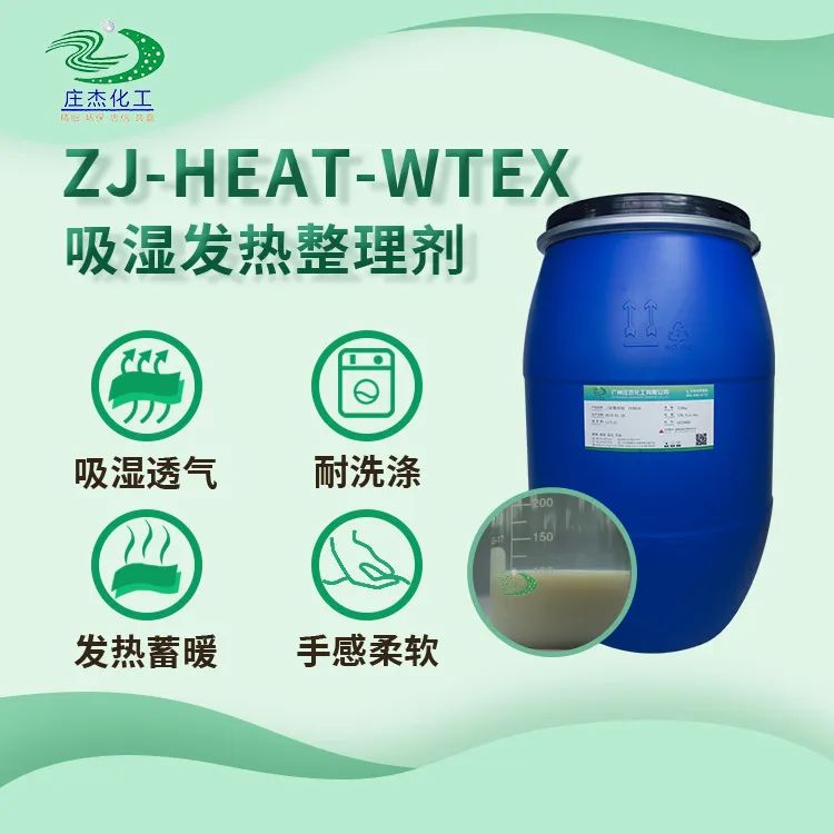 由莊杰化工研發(fā)的ZJ-HEAT-WTEX 吸濕發(fā)熱整理劑具有吸濕和發(fā)熱的效果,它通過后整理工藝,浸軋、浸漬或噴涂,應(yīng)用于棉、粘膠、滌綸、晴綸等各種天然、合成纖維及其混紡織物,讓纖維產(chǎn)生吸濕發(fā)熱的特性,蓬松柔軟。這種功能性助劑通常含有能夠提高纖維吸濕性的化學(xué)成分,如親水基團,它們能夠?qū)鈶B(tài)水向液態(tài)水轉(zhuǎn)化時釋放的熱能傳遞給人體。