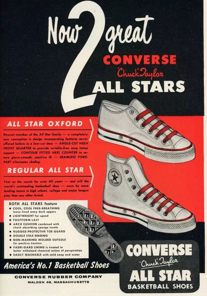 直到 Nike、Adidas 這些運(yùn)動(dòng)品牌出現(xiàn)之前,Chuck Taylor 一直都是籃球鞋的代名詞。