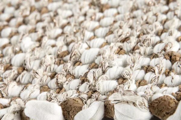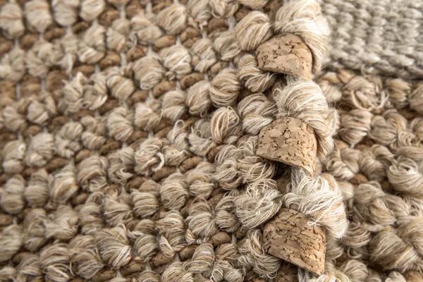 該地毯是由手工編織而成,由于原材料軟木的特殊性,使得這款地毯也具備了許多特性: